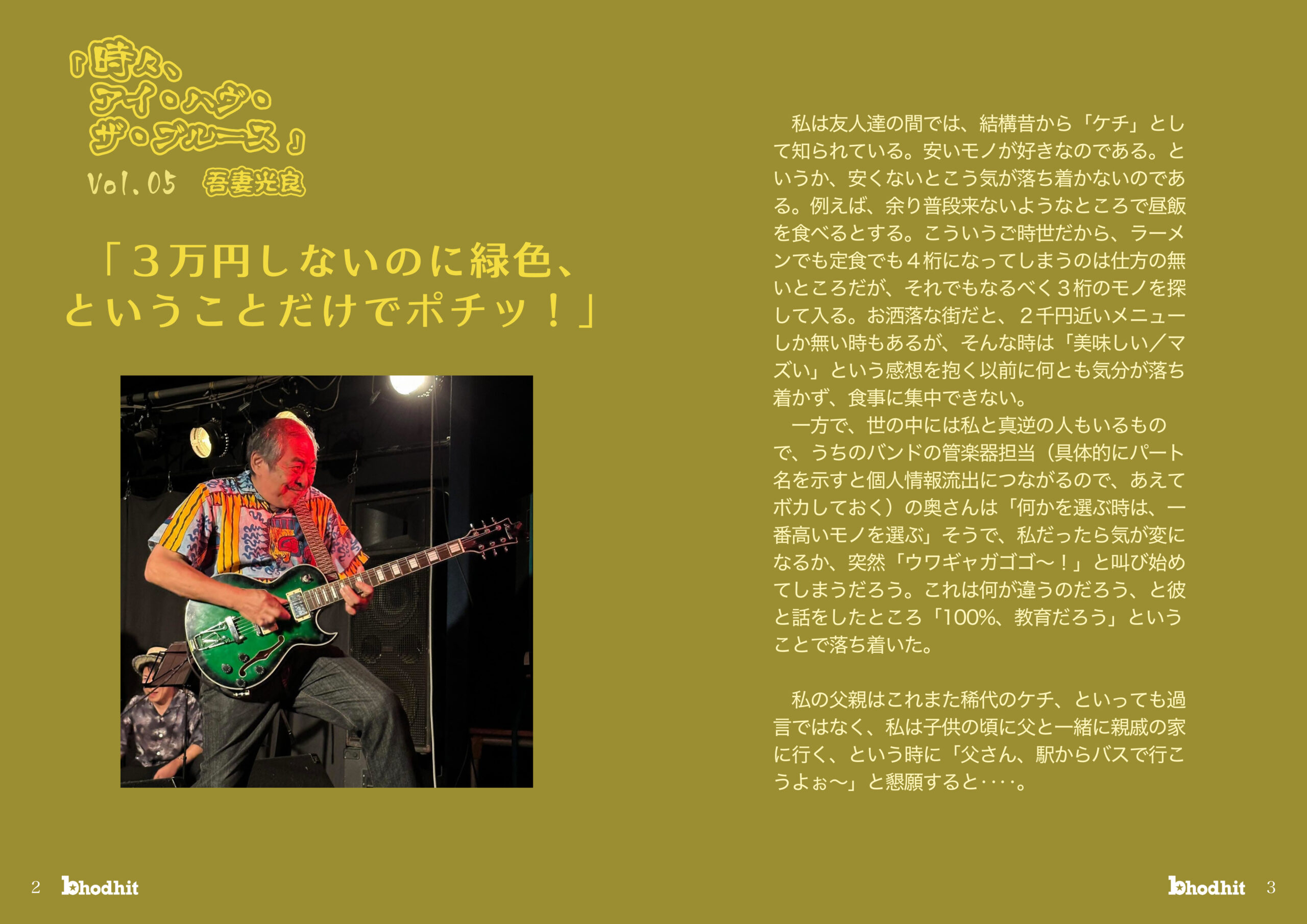 日本屈指のブルースギタリスト、吾妻光良が、日々の暮らしと音楽、そしてちょっぴり哀愁をユーモアたっぷりにつづるコラム連載、第5回目!