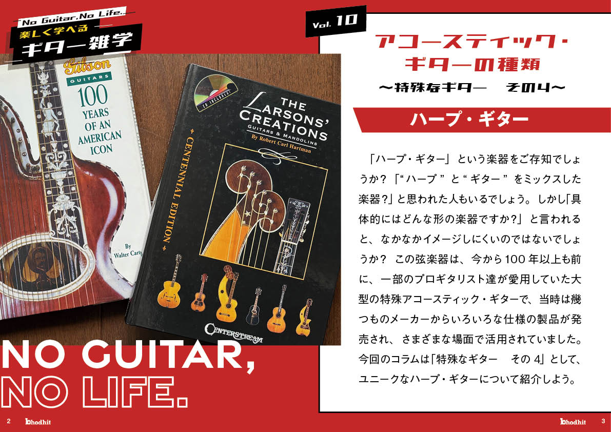 田中稔「NO GUITAR, NO LIFE.」〜 楽しく学べるギター雑学 〜 Vol.10「アコースティック・ ギターの種類」〜 特殊なギター その4〜 ハープ・ギター