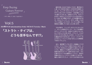 『Keep Buying Guitars Forever』〜ギターが欲しくて、欲しくて止まらない〜 Vol.5 2025年 PGM mitochondrion Order MCD-ST-Tortoise / Black「ストラト・タイプは、どうも苦手なんです!?」菊池慎平新着!!